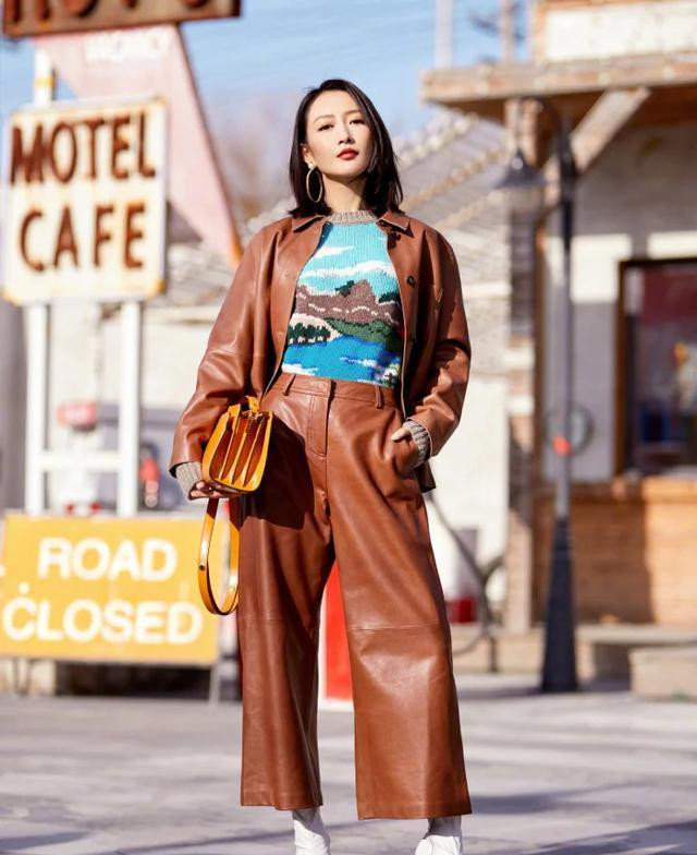 一般来说,穿皮衣会选择宽腿裤,尤其是高腰风格的宽腿裤短外套。宽腿裤的优点不用多说,可以完美修饰身材比例。同样的短上衣搭配高腰宽腿裤,大大修饰了身材比例。宽松版高腰裤对身体的承受力很大,说明腿又长又细。
